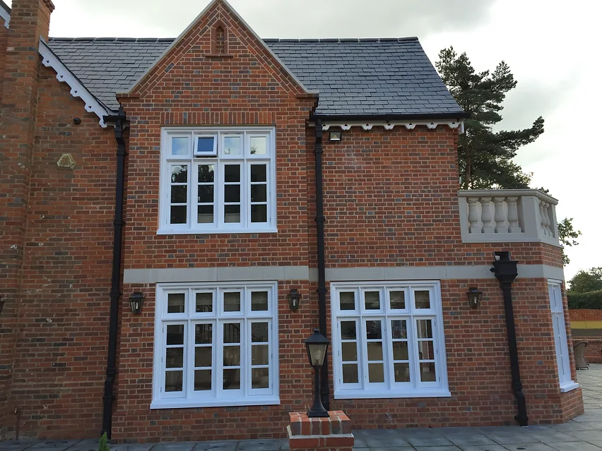 Our Work: We worked with a local brickworks to produce bricks which were laid in a Flemish bond with mortar to exactly match the existing. A local joinery company produced windows and doors to exactly match the style of the existing fenestration.