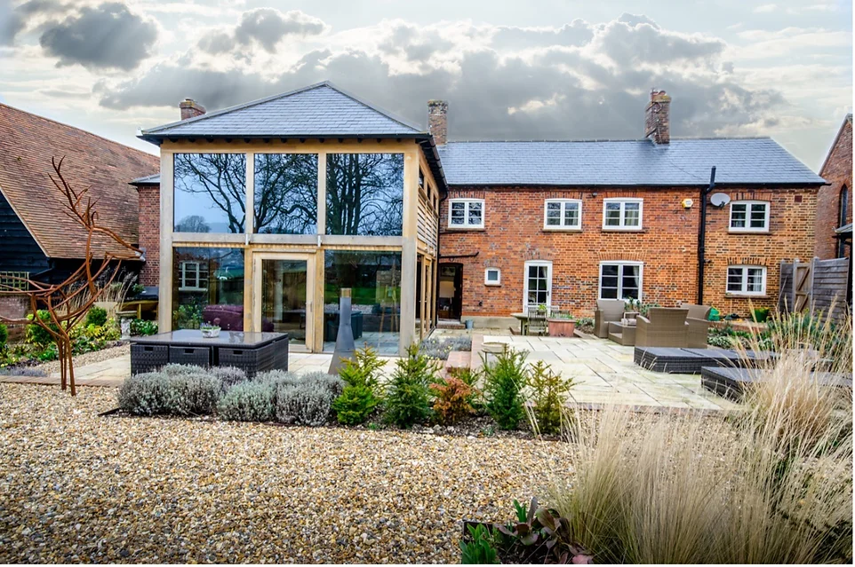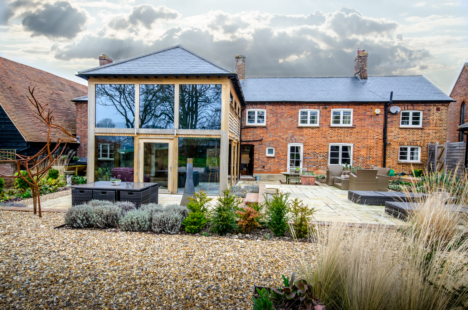 The Brief: Hesters Cottage started life as a terrace of three cottages, which over time had been converted to provide a single dwelling. The property enjoys spectacular views of the Chiltern Hills. The brief was to provide a two-storey extension to provide an extra lounge and a library area, which would optimise the views.