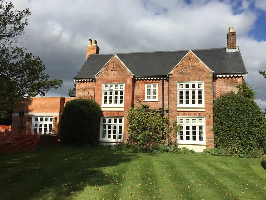 Our Work: We worked with a local brickworks to produce bricks which were laid in a Flemish bond with mortar to exactly match the existing. A local joinery company produced windows and doors to exactly match the style of the existing fenestration.