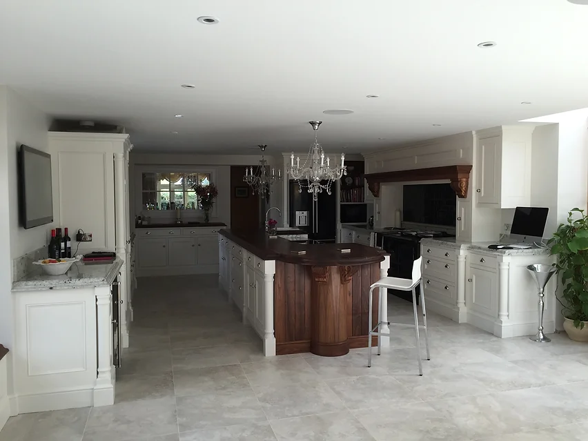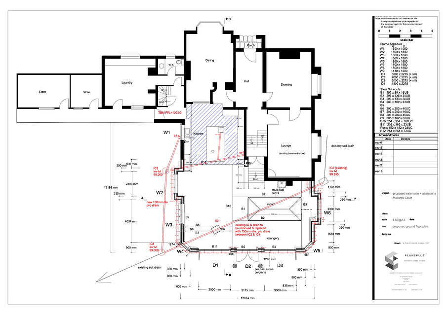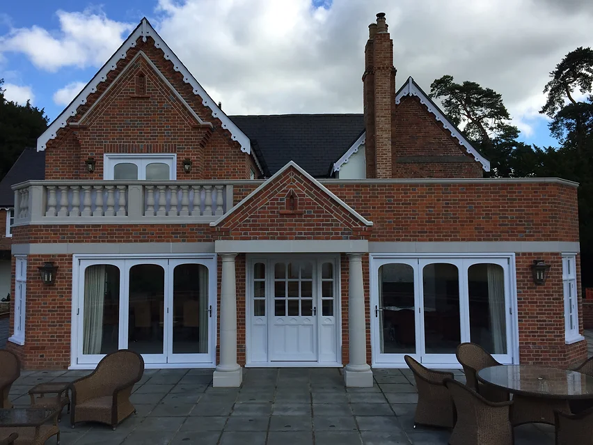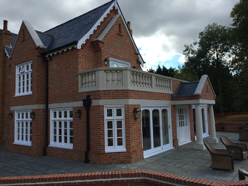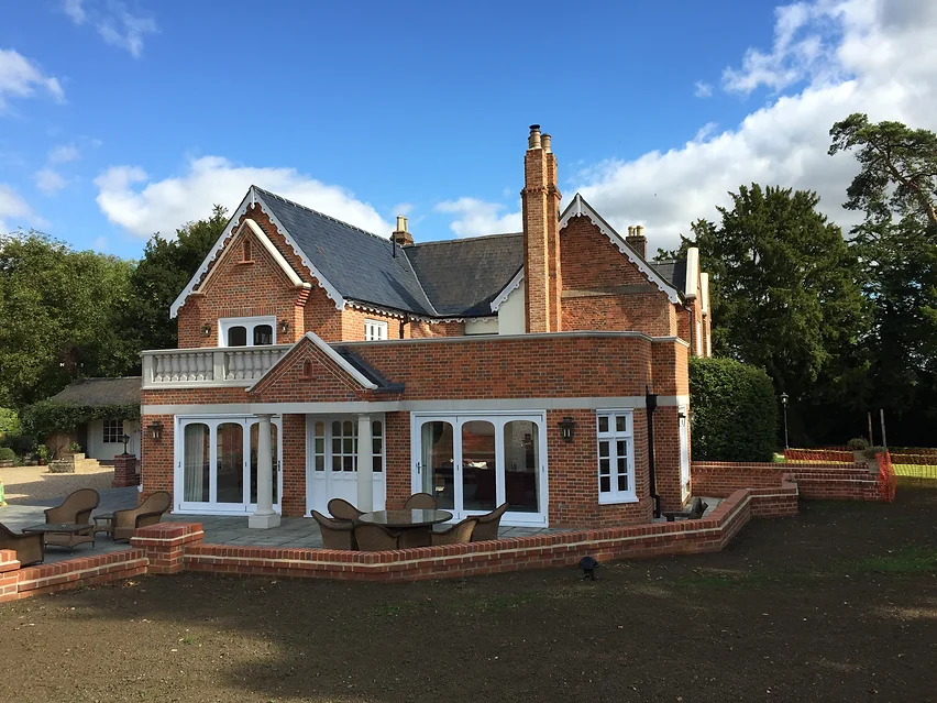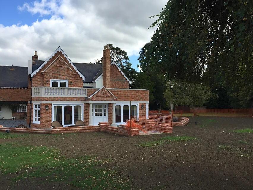 The owners of a large country house requested a design for an extension and alterations to create an extra lounge, garden room, kitchen, and a master bedroom suite with a balcony. The existing home features early Victorian architecture, with part of the basement dating back to medieval times.