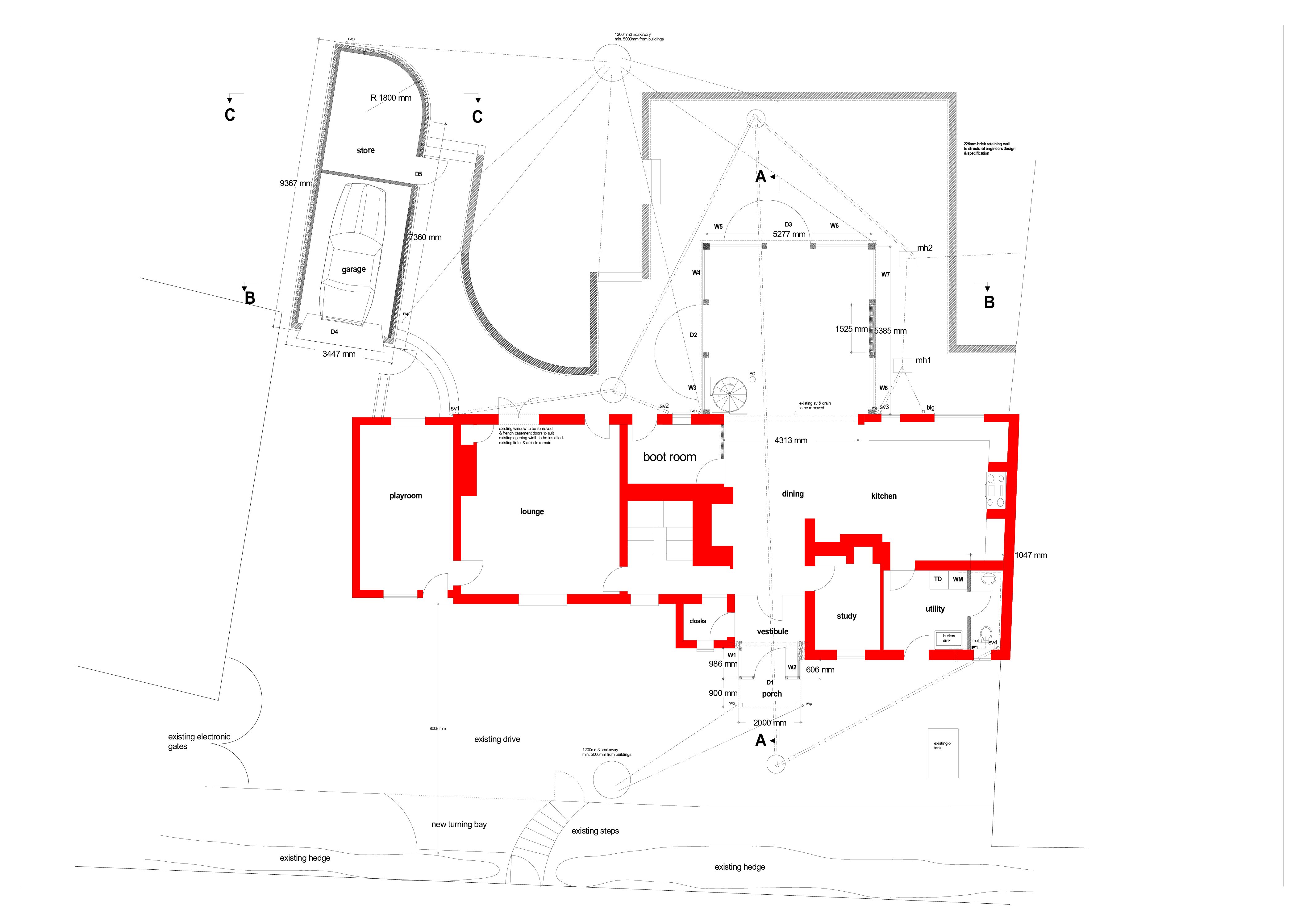The Brief: We were approached by the owners of a large country house, to produce a design for an extension and alterations to form an extra lounge, garden room, kitchen and a master bedroom suite with balcony. The existing dwelling was constructed in early Victorian style, with part of the basement dating back to mediaeval times.