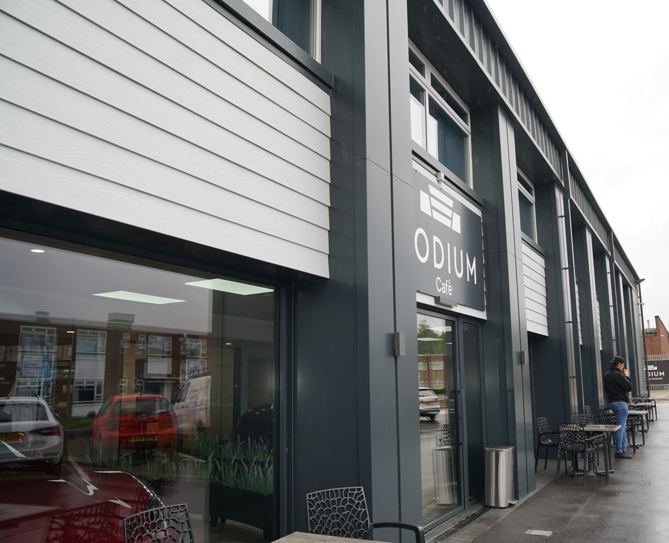 The Brief: The owners of Podium Place have two passions, cars & coffee. We were engaged to design & manage the conversion of 1970s warehouse & office building to provide a space to accommodate a facility for the sales, garage workshop & bespoke detailing of modern classic sports cars, from rare Ferraris, Aston Martins, Bentleys & the like, combined with a cafe area to provide freshly ground specialist coffees roasted on site.